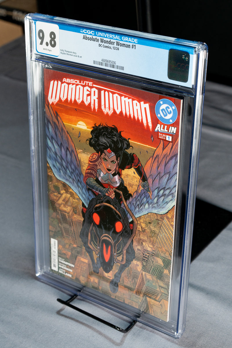 Graded CGC 9.8 with White Pages, this high-grade slab is ideal for collectors looking to secure a pristine copy of the first Absolute Wonder Woman comic and a major starting point for DC’s newest universe.